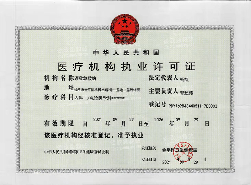 汕頭市頌欣急救轉(zhuǎn)運(yùn)站位于汕頭市金平區(qū)桃園25幢9號,占地500平。汕頭市衛(wèi)生健康局批準(zhǔn)的專業(yè)醫(yī)療轉(zhuǎn)運(yùn)機(jī)構(gòu)。設(shè)有行政辦公區(qū):總經(jīng)理室、會(huì)議室、接待室。功能辦公區(qū):急救科、調(diào)度室、車管科、醫(yī)護(hù)辦公室。